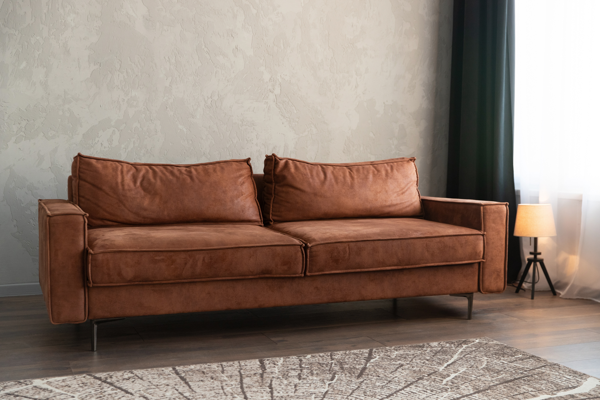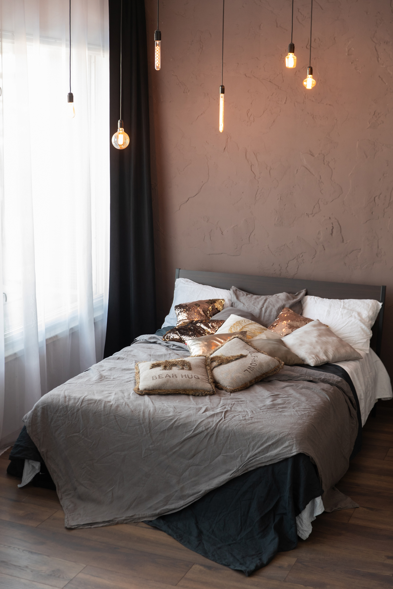 В зале имеется кровать (160х200), 2 больших дивана, кушетка, темно-коричневое кресло. Много подушек и пледов создают уютную домашнюю атмосферу в зоне с кроватью. Декор на комоде, и огромное количество декоративного освещения.