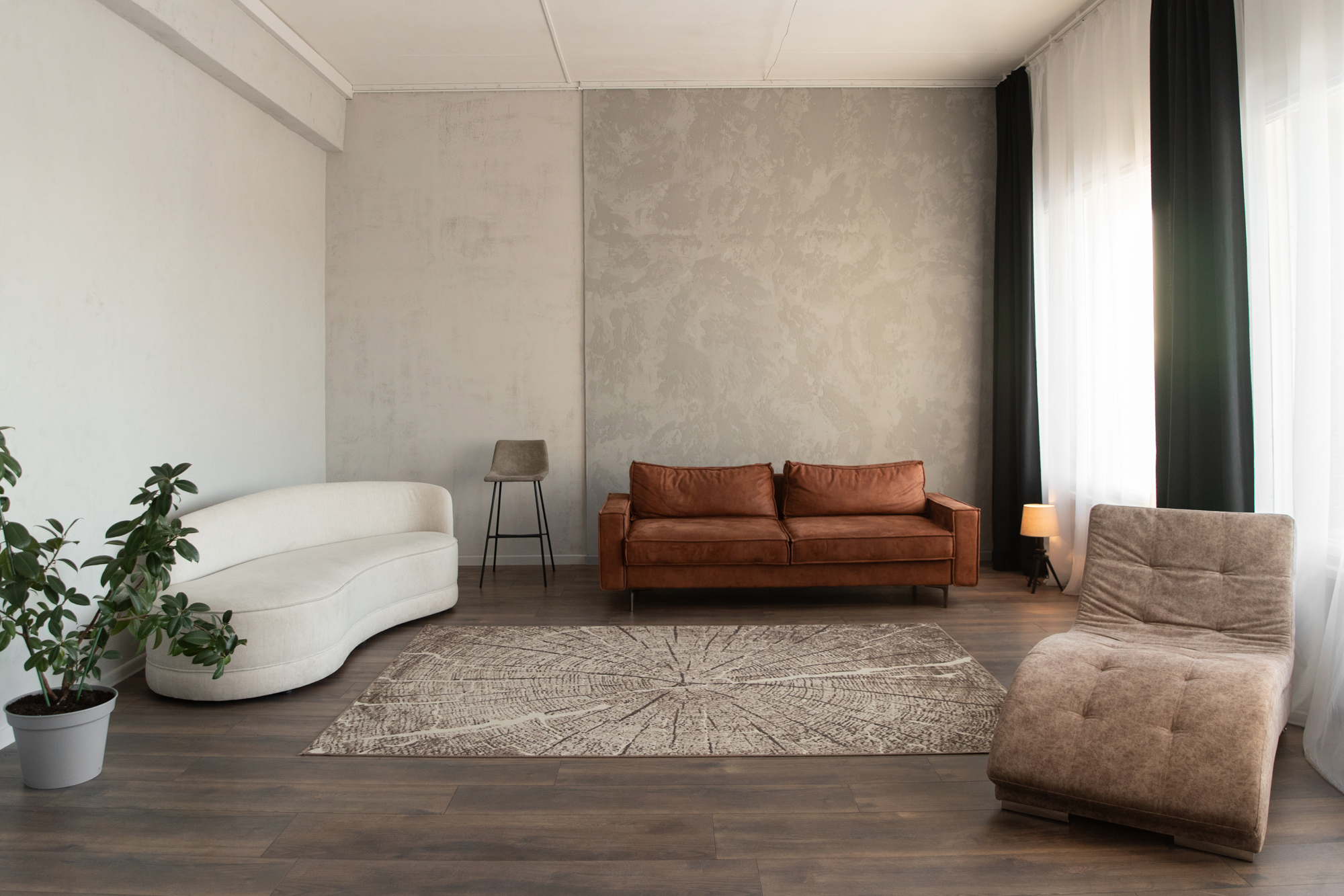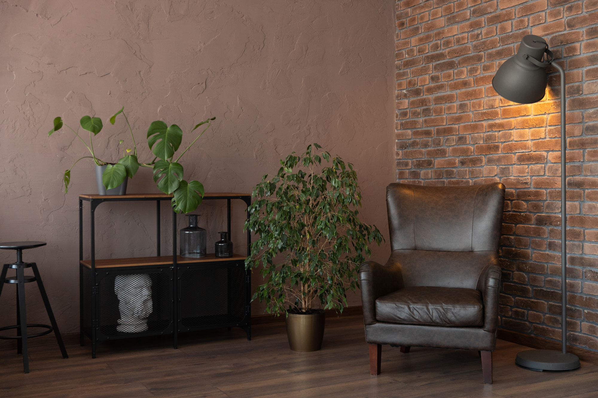Зал Лофт создавался в первую очередь для творческих фотосъемок, для необычных образов. А уютный свет от люстры и торшера подарят много приятных эмоций семьям и влюбленным.
